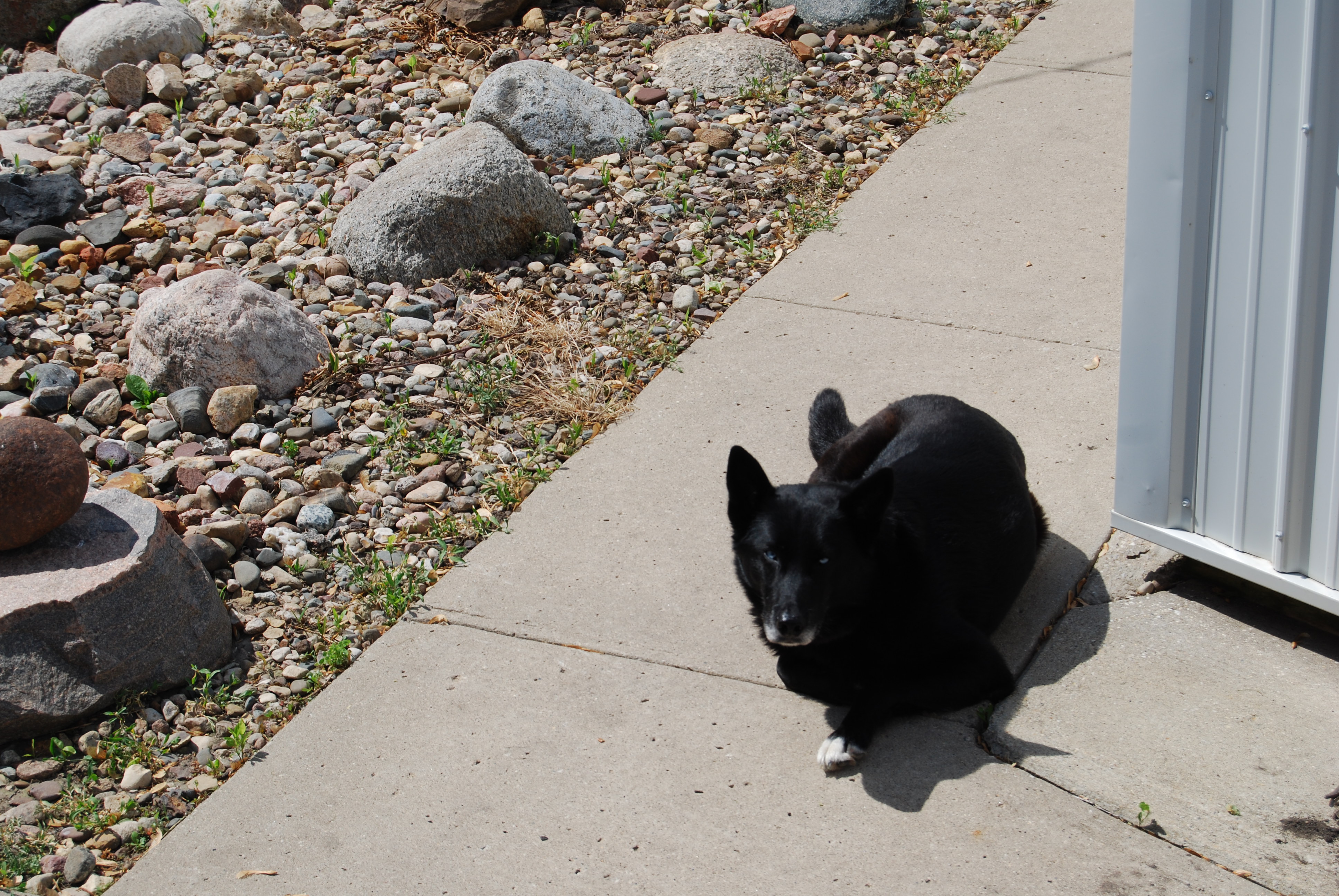 This is our first spring on the acreage (we did not begin moving until the end of July last year) and we have enjoyed observing the flora wake up around the place. All along the front yard are lilacs, and next to the garage is an ornamental tree that had beautiful red blossoms. A couple of windy days filled the air with the helicopter seeds from the maples. There are large amounts of tiny cones on the pine trees, and I don’t know if it is normal or not that they have so many. The variety of butterflies is surprising, as we had very few in the city, while out here we see them everyday. There are a wide assortment of birds here: robins, sparrows, grackles, finches, blackbirds, orioles, thrashers, a chicken hawk and a bald eagle. We had two squirrels, but I have only seen one in the last few weeks, so maybe the hawk got it. We had two rabbits living under the machine shed but the hawk got one of those. The eagle carried away a dead possum that was on the road the other day after the turkey vultures had picked at it for awhile. The toads will croak day and night when there is water in the ditches, but are quiet when they dry up. All the farm fields around us are planted and the crops are coming up. We planted a small vegetable garden with tomatoes, green beans, green peppers and cauliflower, and if it goes well this year we will most likely expand it next year. We have taken in a fugitive, but everything is fine. Our daughter could not keep her husky mix dog Steve anymore because he kept running off and upsetting neighbors. Finally the town council told her the next time would bring a $1,000 fine, so she asked if we would take him. Our dog Marley was already familiar with Steve and they get along fine. A few times I have seen Steve walk out to the road and stare off for a few minutes in all directions. Seeing there is nowhere for him to go, he trots back into the yard of his little island in the country. Time will tell if his wanderlust carries him away.