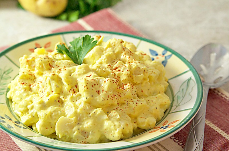 Some meals are thought of as seasonal, and for most people potato salad is a summertime side dish. I can eat it anytime, so that is the title I came up with for our version. I rarely use measurements when I cook anything, so you will need to season to taste. It’s better to start with a little, then add more if desired.