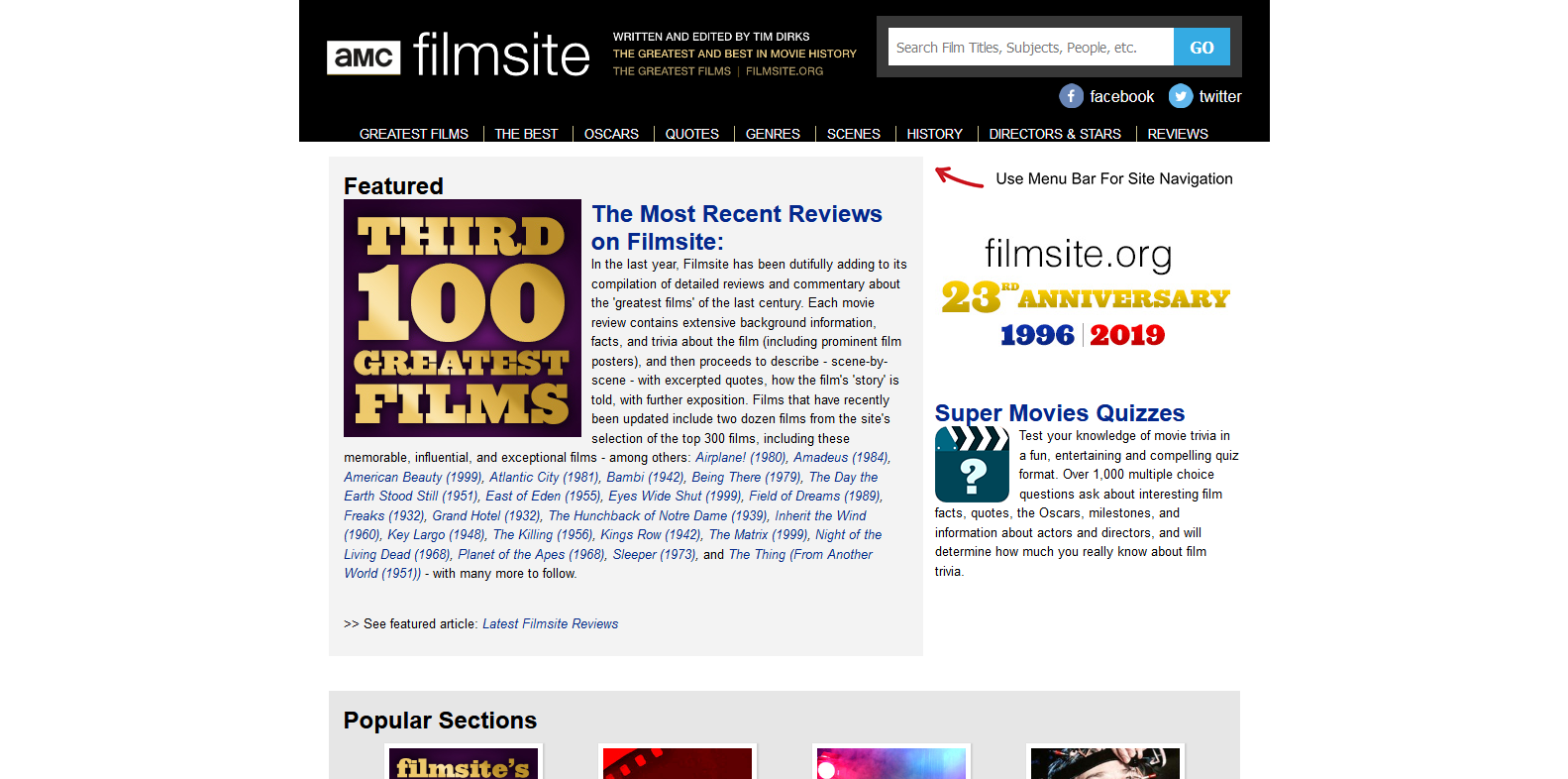 greatest scenes, biography’s of stars and directors, and reviews. A