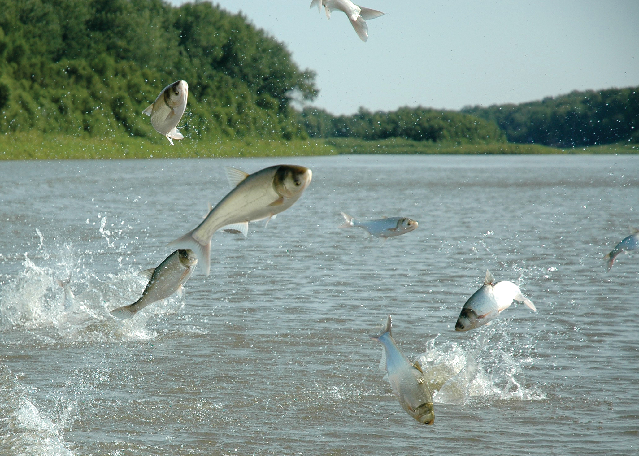 could see big carp jumping out of the wake the boat was leaving.