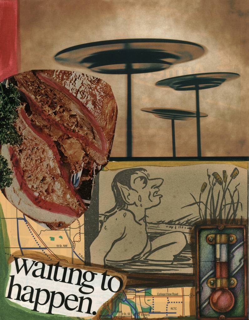 Once a month I highlight a piece of art I have created and posted on my Fine Art America site. This one is titled Waiting To Happen from the Collage Art Collection.