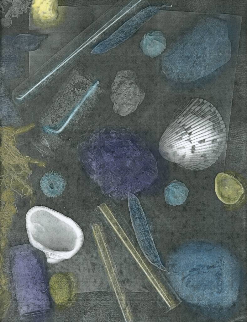 Once a month I highlight a piece of art I have created and posted on my Fine Art America site. This one is titled “Shadows and Shells” from the Scan Art Collection.