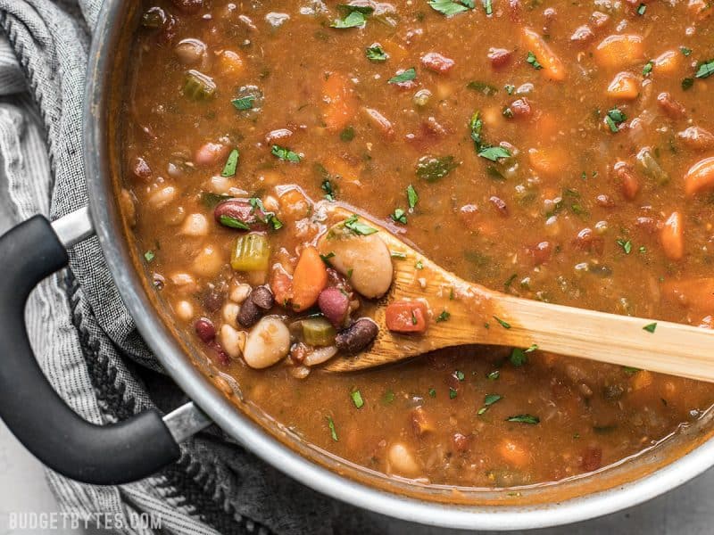 During the course of a year we will cook a bone-in ham as a meal for a couple of the holidays. The bone is saved, with a generous amount of ham still attached, in the freezer for a month or two until I am ready to make a batch of ham and beans. Following is my recipe.
